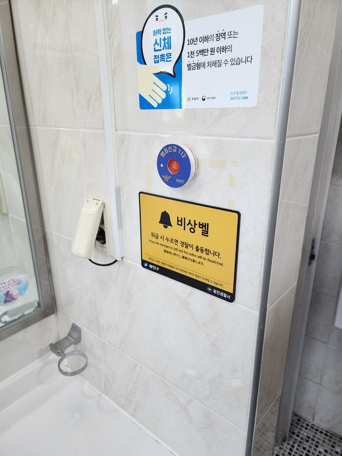 이번에 설치되는 제품은 정보통신기술(ICT)을 접목한 ‘스마트 비상벨’로, 화장실 칸막이와 세면대 벽면 등 눈에 띄는 곳에 부착했다. 내부 센서가 움직임을 감지하면 “이곳은 비상벨이 설치되어 있는 안심 화장실입니다”라는 자동 음성이 나온다.