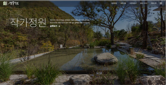 홈페이지는 ▲정원탐방(작가정원, 숲 정원, 개인정원) ▲정원교육(교육공고, 신청조회) ▲시민정원사(시민정원사 정원, 활동갤러리) ▲정원 가이드 ▲커뮤니티(공지사항, 보도자료, 활동 갤러리, 자유게시판)으로 구성되어 있다.