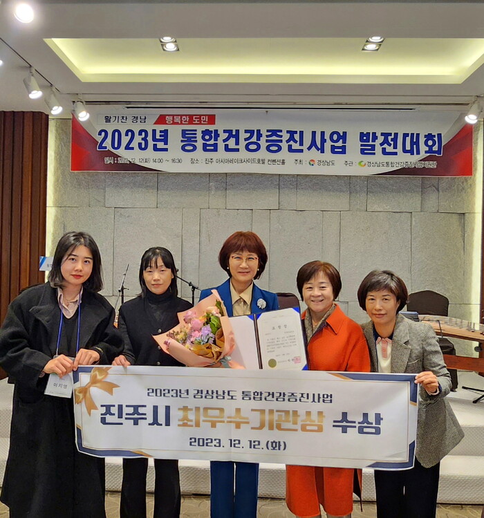 진주시는 12일 ‘2023년 통합건강증진사업 발전대회’에서 ‘2023년 지역사회 통합건강증진사업 최우수기관’으로 선정되어 경상남도지사상을 수상했다.