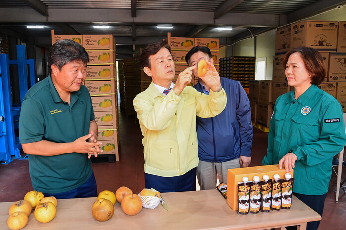 이날 조규일 시장은 “작년에는 봄에 저온 피해로 배 재배 농가가 힘들었는데, 올해 수확철에 일소 피해로 또 힘든 상황을 겪고 있어 안타깝다”며 농업인들을 위로하고 “농가에 실질적인 도움이 될 수 있는 대책을 마련하도록 하겠다”고 말했다.