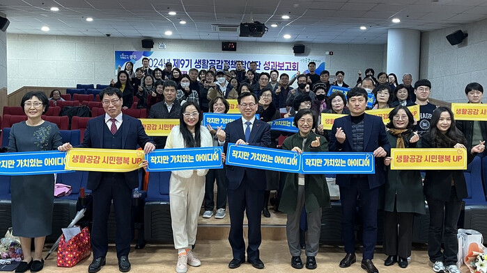 [광주=정찬남 기자] 고광완 광주시 행정부시장(왼 쪽부터 네 번째)은 16일 시청 무등홀에서 열린 ‘제9기 생활공감정책 참여단’ 성과보고회에 참석해 생활공감정책 유공자 시상을 한 뒤 기념촬영을 하고 있다./광주광역시 제공
