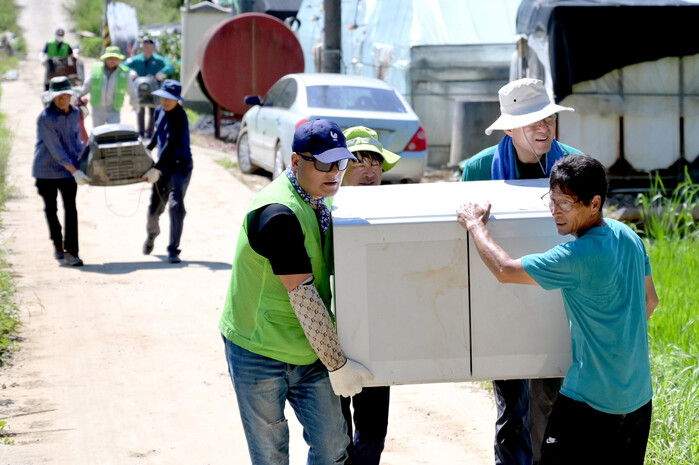 또 20일에는 협의회 회원 80여 명이 명석면의 침수주택과 명석중학교를 찾아 오염된 집기를 세척하고 환경을 정비하기도 했다. 이어 21일에는 사봉·대곡·미천면 일대의 주택과 비닐하우스를 정리하고, 22일에는 100여 명의 회원이 나서 수곡면 피해지역에서 쓰레기를 수거, 정리하는 등 수해민의 시름을 함께 나누기 위해 최선을 다하고 있다.