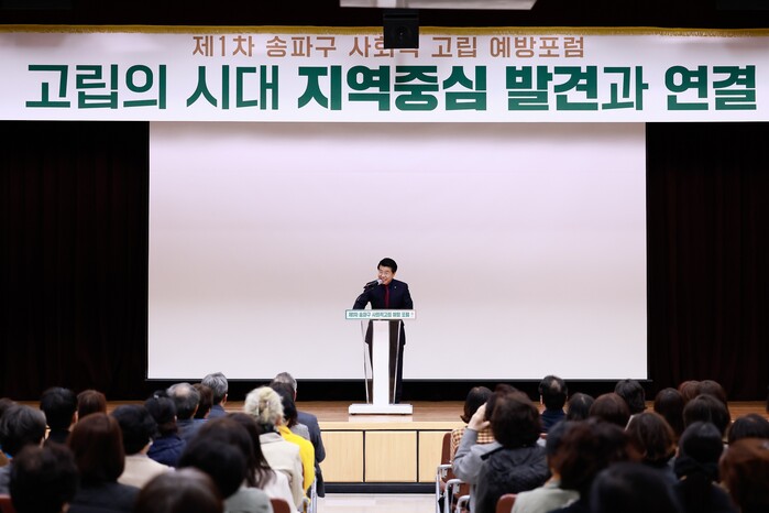 [시민일보 = 이대우 기자] 서울 송파구(구청장 서강석)가 ‘고립의 시대, 지역 중심 발견과 연결’이라는 주제로 포럼을 개최하고, 사회적 고립 대응 방안을 마련하기 위한 공론의 장을 활짝 열었다.