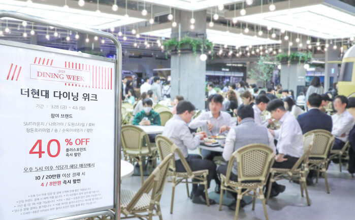 | ▲ 오는 28일 진행 예정인 ‘다이닝 위크’를 앞두고 더현대 서울 식당가에서 고객들이 식사를 즐기고 있다.(사진=현대백화점 제공) |