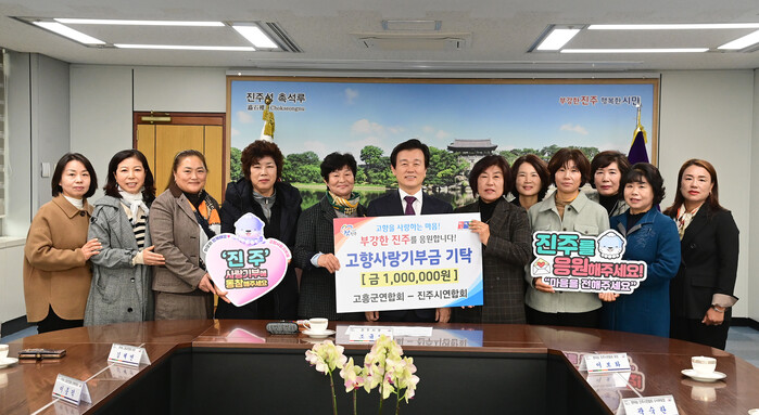 한국여성농업인 진주시연합회(회장 이보화)와 고흥군연합회(회장 김계연)은 16일 기업인의 방에서 농업·농촌 지역경제 활성화를 위해 ‘고향사랑기부제 상호 교차 기탁식’을 가졌다.