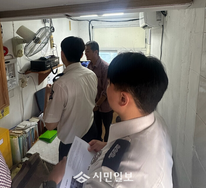 ▲ 강진소방서 직원들이 강진읍 소재 노후 아파트를 대상으로 화재 안전컨설팅과 화재 예방 위한 전기선 등을 점검하고 있다. / 강진소방서 제공 |