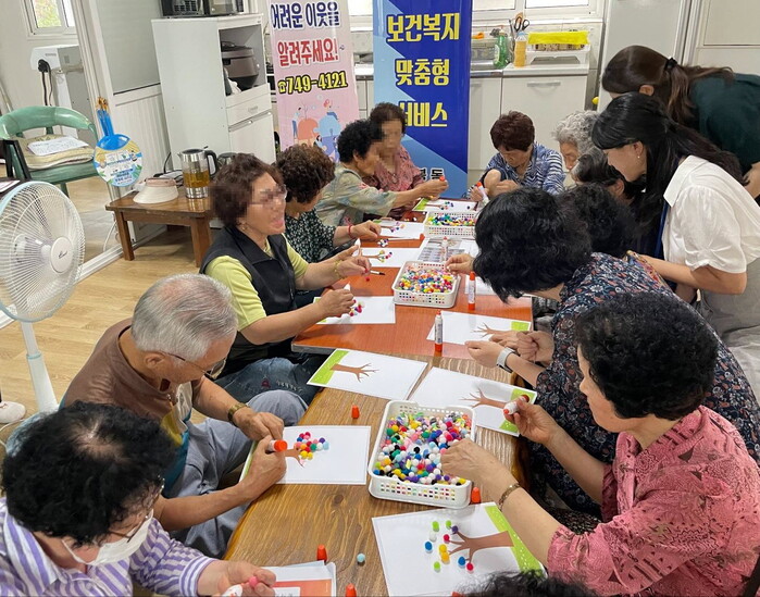 ‘찾아가는 맞춤형 경로당 순회 교육’은 지난 5월부터 관내 경로당을 직접 방문하여 진드기 매개 감염병 및 온열질환 등 계절성 질환의 예방법 교육과 혈압·혈당 측정을 통한 건강상담 서비스를 제공하고 있으며, 어르신들의 소근육을 활성화할 수 있는 공예 프로그램 운영 등 치매 예방 활동도 실천하고 있다.