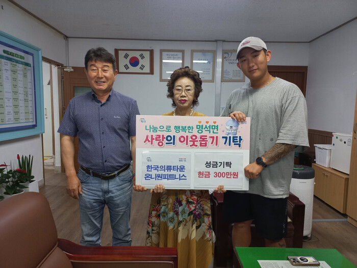 진주시 명석면은 지난 23일 한국의류타운(대표 김희용) 및 온니원피트니스(대표 곽도원)에서 집중호우로 피해를 입은 수재민들을 돕기 위한 성금 300만 원을 전달했다고 밝혔다.