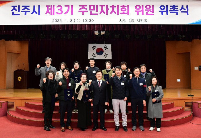 이날 진주시는 2025년 1월부터 2년간 활동할 제3기 주민자치회 위원 129명을 위촉했다. 제3기 주민자치회 위원은 금산면 주민자치회 위원 47명, 상봉동 주민자치회 위원 50명, 충무공동 주민자치회 위원 32명으로 자율적으로 마을 문제를 발굴하고 해결방안을 모색하는 등 주민을 위한 다양한 활동을 펼치게 된다.