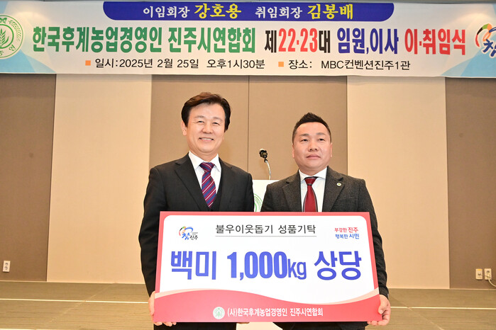 김봉배 회장은 취임사를 통해 “치솟는 농업 생산비, 벼 재배면적 감축 등 농업이 어려운 시기이지만 진주농업의 새로운 미래를 열어가는 선도자로서의 자긍심을 가지고 최선을 다하겠다”며 “땀과 사랑으로 키운 농산물이 제값을 받고, 농업이 생명산업으로 존중받으며 미래 먹거리 산업으로 거듭날 수 있도록 맡은 바 최선을 다하겠다”고 포부를 밝혔다.