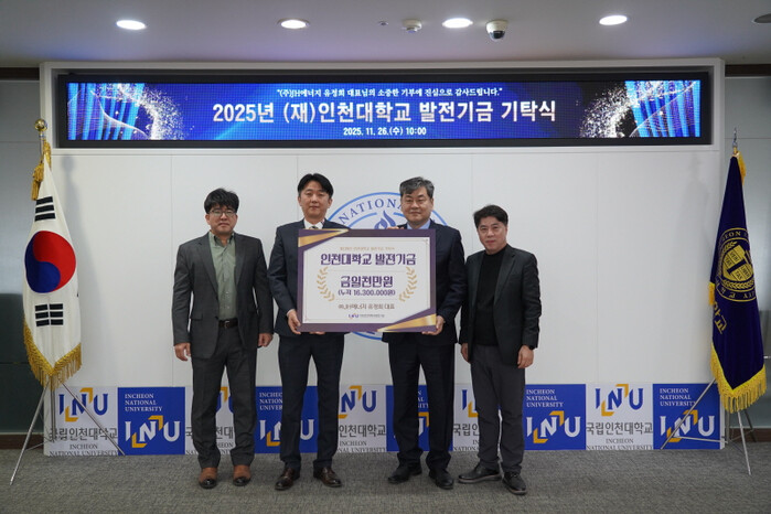 기탁식에는 인천대 이인재 총장과 기부자인 JH에너지 유정희 대표, 윤병조 발전기금 상임이사 등이 참석, 발전 기금 전달과 함께 감사패 수여식 등이 진행됐다.