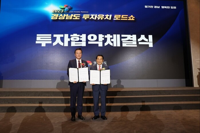 | ▲ 2023년 경상남도 투자유치 로드쇼에서 진행된 투자협약 체결식사진 |
