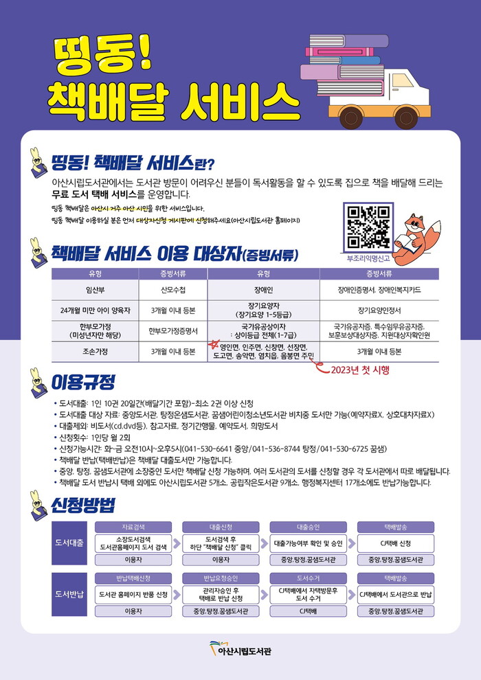 | ▲ '띵동! 책배달 서비스' 안내문. (사진=아산시청 제공) |