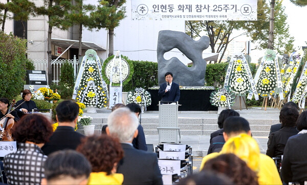 [인천=김형만 기자] 인천시교육청은 10월 30일 인현동 화재 참사 25주기를 맞아 희생자들을 기억하고, 안전의 중요성을 되새기는 추모식을 개최했다고 밝혔다.