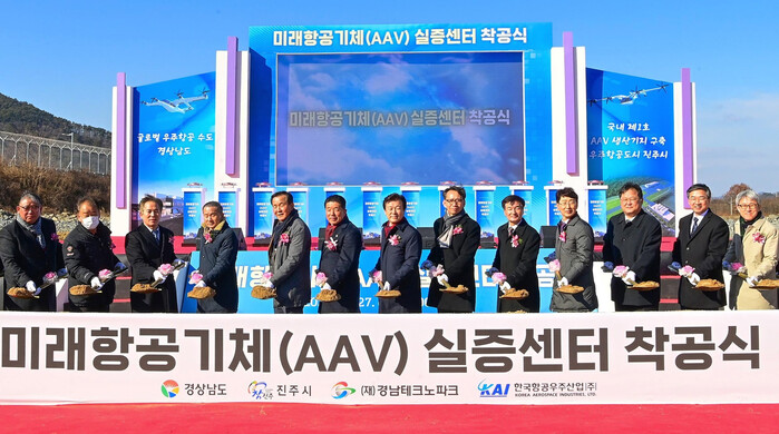 진주시는 27일 이반성면 가산일반산업단지에서 ‘미래항공기체(AAV) 실증센터 구축사업 착공식’을 개최했다.