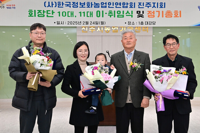 정보화농업인연합회 진주지회는 24일 진주시농업기술센터에서 회원 80여 명과 조규일 진주시장, 내빈 등 초청인들과 함께 제10대, 11대 회장 이취임식을 개최했다.