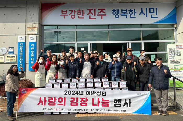 진주시 이반성면사무소(면장 정원규)는 지난 4일부터 5일까지 이틀간 취약계층의 겨울나기 준비를 지원하기 위한 ‘2024년 사랑의 김장 나눔 행사’를 실시했다.