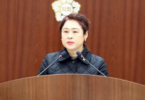 | 김영임 연수구의원이 5분 발언을 통해 원도심 반려견 놀이터 조성을 촉구하고 있다. |