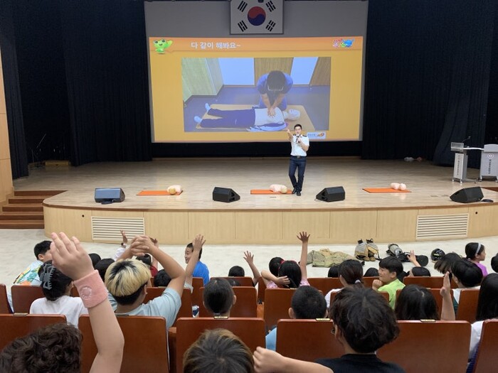 이어진 소방안전교육은 ‘화재 시 피난 행동요령’, ‘소화기 사용법 교육’, ‘심폐소생술 이론교육과 개인별 실습’ 등의 내용으로 이뤄졌다.