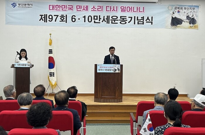 [부산=최성일 기자] 국가보훈부 부산지방보훈청(청장 전종호)은 지난 10일 오전 10시 부산광복기념관 홍보관에서 국권회복을 위해 헌신하신 6・10만세운동 선열을 기리기 위한 제97주년 6・10만세운동 기념식을 개최했다고 밝혔다.