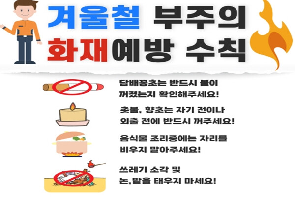 이에 완도소방서는 명절 전후 군민이 실천할 수 있는 핵심 안전수칙을 중심으로 집중 홍보에 나선다. 주요 수칙은 △조리 중 자리를 비우지 않기 △담배꽁초 불씨 완전 제거 후 지정 장소 폐기 △난방기구 주변 이불·의류 등 가연물 제거 및 안전거리(약 1m) 유지 △문어발식 콘센트 사용 자제와 멀티탭 과부하 주의, 전열기기 단독 사용 권장 △가정용 소화기 비치 및 사용법 숙지 등이다.