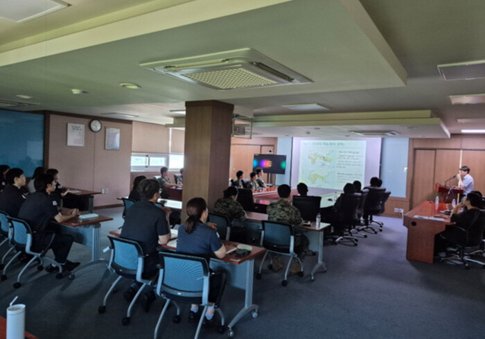 | 인천검역소가 한빛부대 20진 장병들을 대상으로 1차 교육을 하고 있다. (사진=인천검역소) |