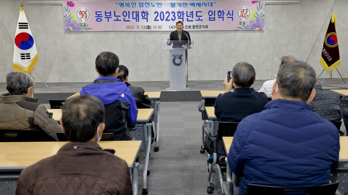 동부노인대학은 지역 어르신들에게 건전한 취미생활을 장려하기 위해서 교양강좌와 취미교실 등 다양한 프로그램을 구성하여 운영하고 있으며, 매주 월요일 10시부터 12시까지 수업이 진행된다. 또한 3월 15일 북부노인대학, 3월 17일 합천노인대학 입학식이 예정돼 있다.