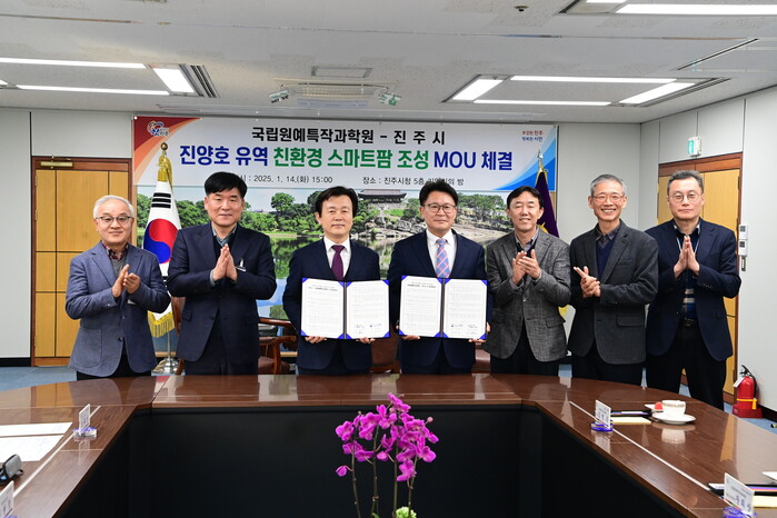진주시와 전북 완주시에 있는 농촌진흥청 산하 국립원예특작과학원(이하 ‘국립원예원’)은 14일 진주시청 기업인의 방에서 ‘진양호 유역 친환경 스마트팜 조성’을 위한 업무협약을 체결했다.