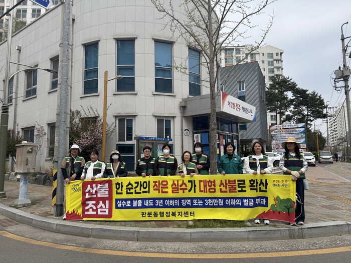 판문동행정복지센터는 앞으로도 산불 예방을 위한 홍보 활동을 지속적으로 추진하고, 공원 및 산림 지역의 순찰을 강화해 산불 예방에 총력을 기울일 계획이다.