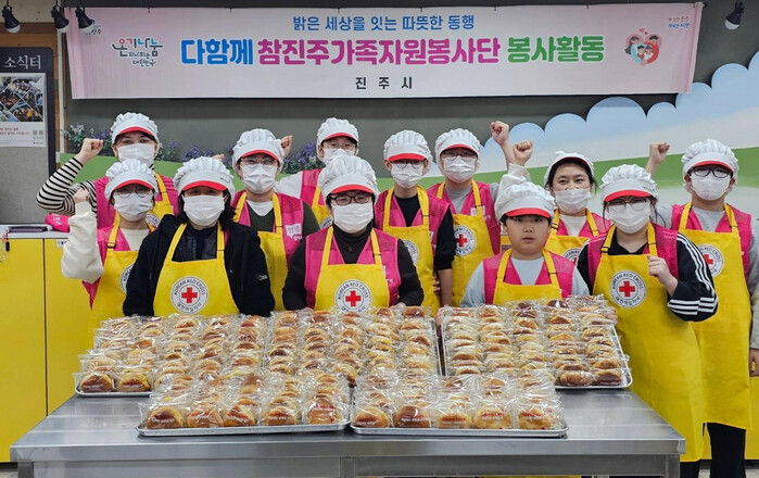 진주시자원봉사센터는 지난 7일 상평동 소재 대한적십자사 경남서부봉사관에서 다함께 참진주가족자원봉사단 25명이 참여한 가운데 ‘사랑의 빵 나눔 봉사활동’을 실시했다.