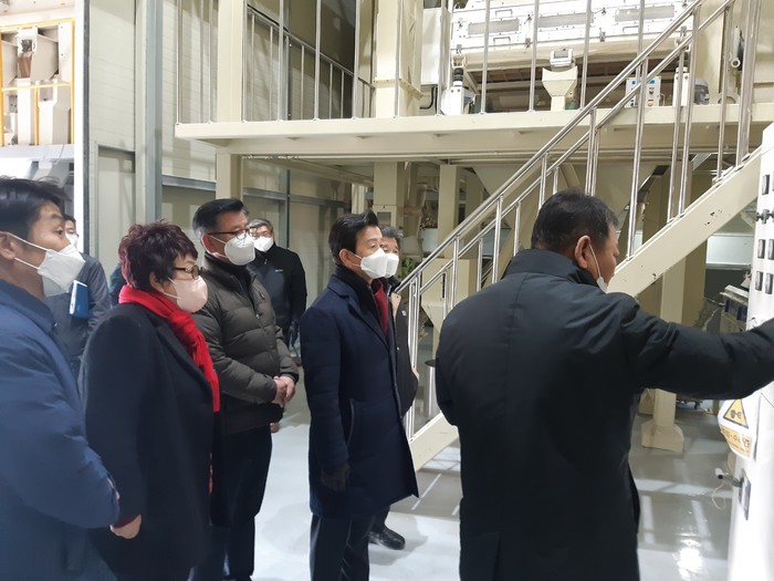 진주시는 지난 25일 사봉면 시장격리곡 매입 현장인 진주시농협연합 미곡종합처리장을 방문해 미곡종합처리장 대표 박윤철로부터 시설현황과 시설 운영 등에 대한 설명을 듣고 매입부터 선별. 저장. 도정. 쌀 포장까지 진행 과정을 둘러보았다.