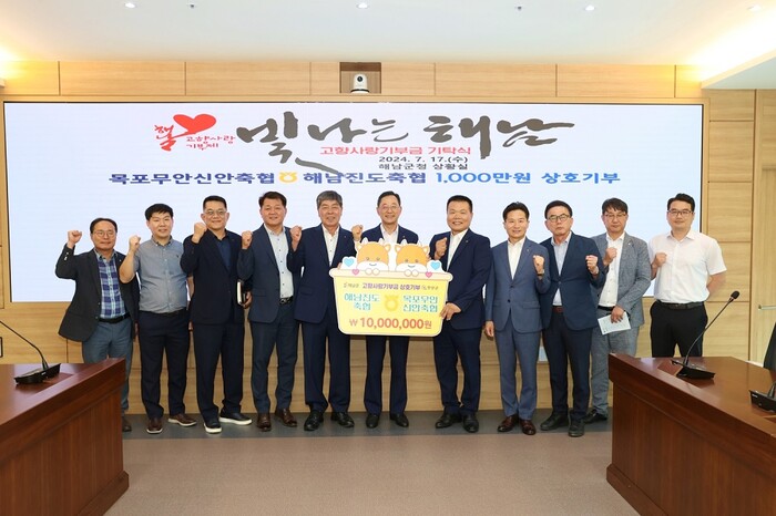 지난 17일 해남군청에서 진행된 기탁식에는 명현관 해남군수와 해남진도축협 한종회 조합장, 목포무안신안축협 문만식 조합장, 농협은행 해남군지부 김계열 지부장, 농협은행 무안군지부 김해종 지부장 등이 참석했다.
