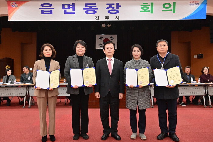 진주시는 27일 읍면동장 정례 회의를 열고 ‘2025년 읍면동 종합평가’에서 우수한 성적을 받은 읍면동을 ‘우수기관’으로 표창했다고 밝혔다.