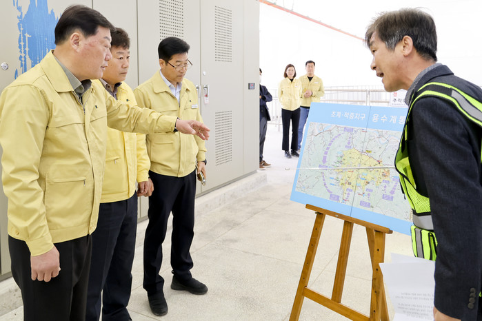 13일 김윤철 합천군수는 초계면과 적중면 일대에 농업용수를 공급하는 20만톤/일 규모의 초계1양수장을 직접 방문했다. 이번 방문에서 농어촌공사와 합동으로 펌프 가동 여부, 황강에서 유입되는 수로 상태 확인 등 용수공급에 문제는 없는지 꼼꼼하게 점검했다.