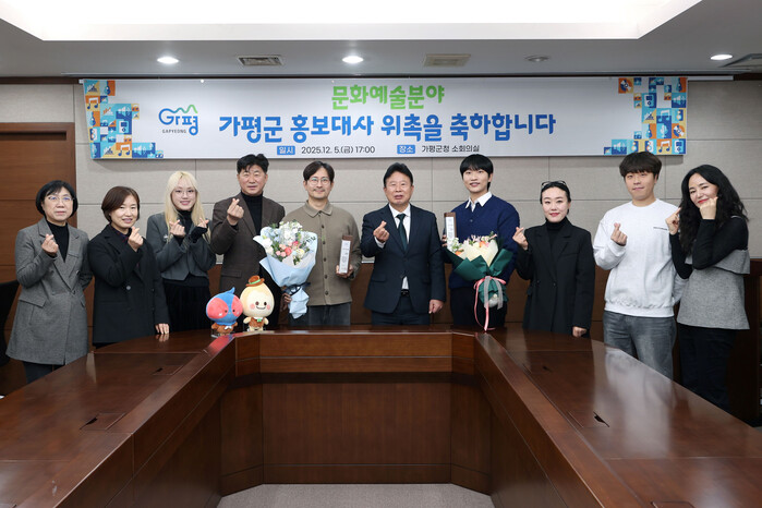 이날 위촉식에서는 위촉패 수여와 함께 향후 활동 방향을 공유하는 간담회가 진행됐다. 두 홍보대사는 가평군 주요 행사 참여, 관광·문화 콘텐츠 홍보 영상 출연, 인터뷰 협조 등 군의 대외 이미지 제고를 위한 다양한 활동에 참여할 예정이다.