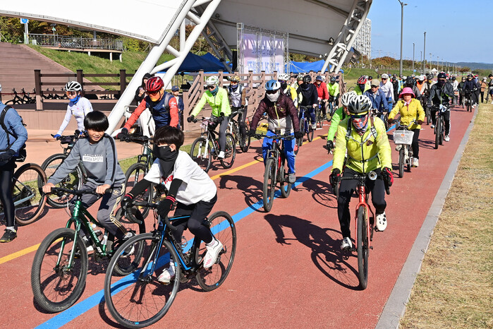 이날 행사에는 조규일 진주시장과 백승흥 시의회 의장, 도의원, 시의원을 비롯해 시민과 자전거동호회 회원 등 600여 명이 참가했으며, 특히 가을을 맞아 가족단위 참여 시민이 눈에 띄게 많았다.