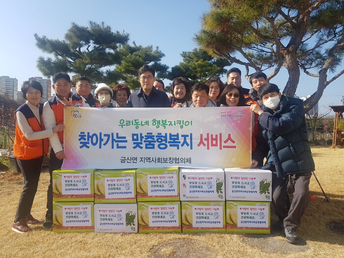 금산면 지역사회보장협의체 위원 15명은 떡국, 나물, 김치 등 직접 만든 밑반찬을 전달하며 어르신의 안부를 묻는 등 이웃사랑 나눔을 실천했다.