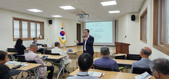 이번 연수는 한국선비문화연구원 김경수 책임연구원과 자료집 개발위원을 연수 강사로 위촉해 △남명 선생의 삶과 사상에 대한 이해 △남명사상의 교육자료집 특징 및 활용 방안 등의 주제로 남명선생에 대한 이해를 높이고 학교 현장에서 남명 선생의 삶과 사상을 보다 체계적으로 가르치기 위해 마련됐다.
