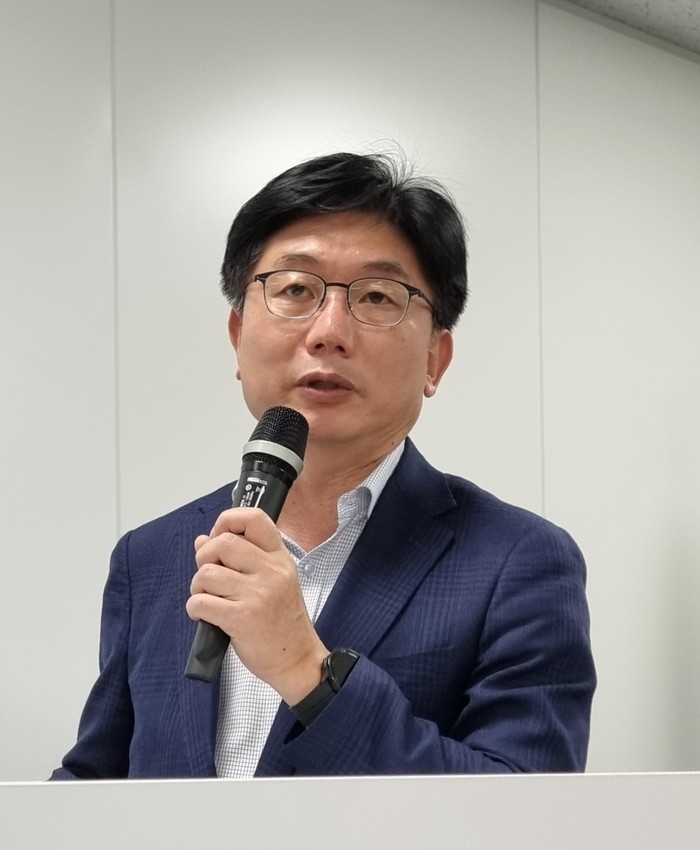 | ▲ 삼성전자 DS 부문 친환경경영 혁신기술을 소개하고 있는 삼성전자 DS 환경안전센터장 송두근 부사장.(사진제공=삼성전자) |