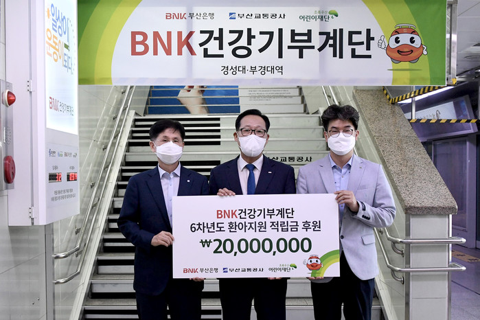 [시민일보 = 여영준 기자] BNK부산은행은 22일 오전, 부산지하철 2호선 경성대·부경대역 승강장에서 초록우산어린이재단 부산지역본부에 ‘BNK건강기부계단’ 적립금 2000만원을 전달했다고 밝혔다.