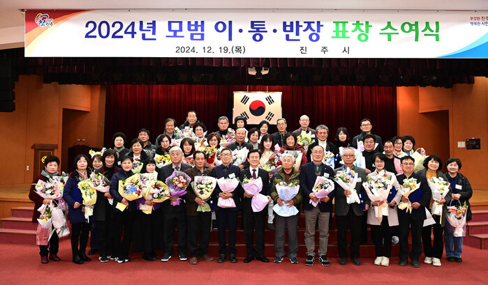 진주시는 19일 시청 시민홀에서 이·통·반장 및 축하객 등 150여 명이 참석한 가운데‘2024년 모범 이·통·반장 표창 수여식’을 개최했다.
