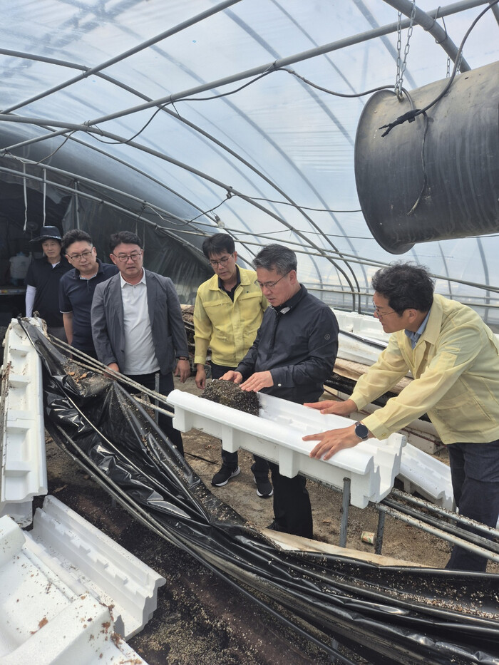 담양은 시설원예 76ha에 침수 등의 피해가 발생해 전남에서 가장 큰 시설원예 피해가 발생한 지역으로 박서홍 대표는 딸기묘 침수피해를 입은 농가를 찾아 위로 하고, 빠른 복구를 위한 농민 등 현장의 의견을 청취했다.