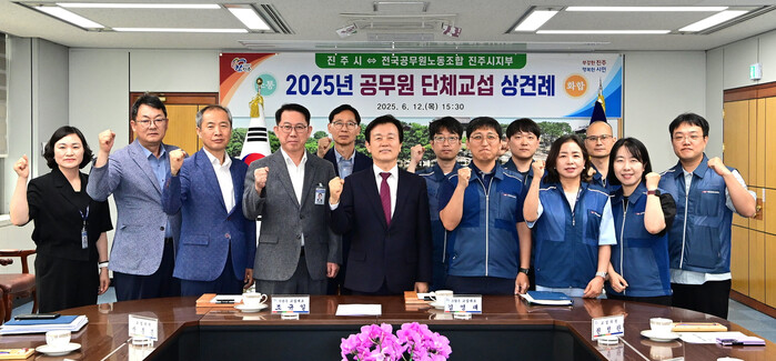 이날 상견례에는 기관 측 교섭대표인 조규일 진주시장과 노조 측 교섭대표인 김영태 진주시지부장을 포함한 양측 교섭위원이 참석해 본격적인 단체교섭에 앞서 상호 인사를 나누고 향후 교섭 일정과 운영 방향에 대해 의견을 교환했다.