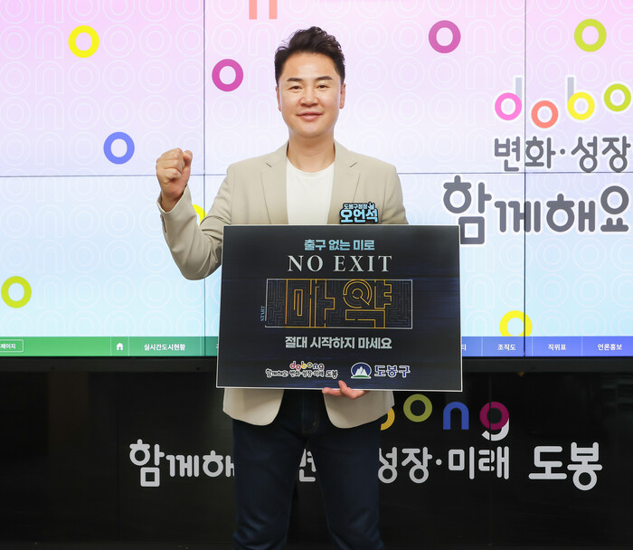 오언석 서울 도봉구청장이 최근 마약 근절을 위한 ‘노 엑시트(NO EXIT)’ 캠페인에 동참했다. 노 엑시트 캠페인은 지난 4월 경찰청과 한국마약퇴치운동본부 등 관계기관 합동으로 시작한 범국민 마약 근절 운동이다. 사진은 오 구청장이 노 엑시트 캠페인에 동참하고 있는 모습.(사진=도봉구청 제공)
