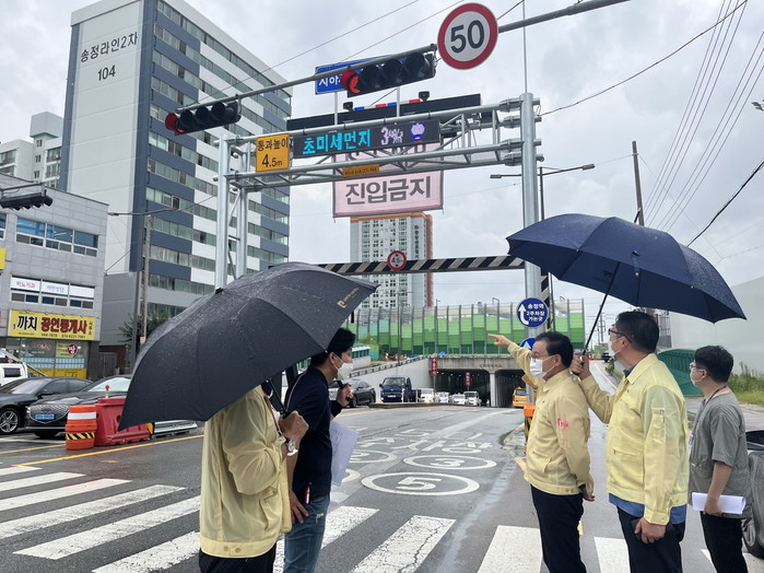이날 박남주 시민안전실장은 신덕지하차도를 방문해 자동차단시스템 작동 및 수배전반 시설 관리상태 등을 점검했다.