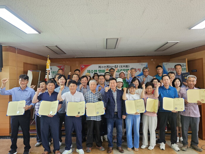 최진환 지수면장은 “지수면은 예로부터 이웃 간 배려, 나눔, 봉사 정신이 이어지고 있는 지역”이라며 “지수에서 오래 거주해온 면민뿐만 아니라 다시 고향을 찾아오거나 새로 전입하신 분들까지 빠짐없이 살펴 ‘복지사각지대 제로화’를 위한 명예 공무원의 활약을 기대한다”고 말했다.