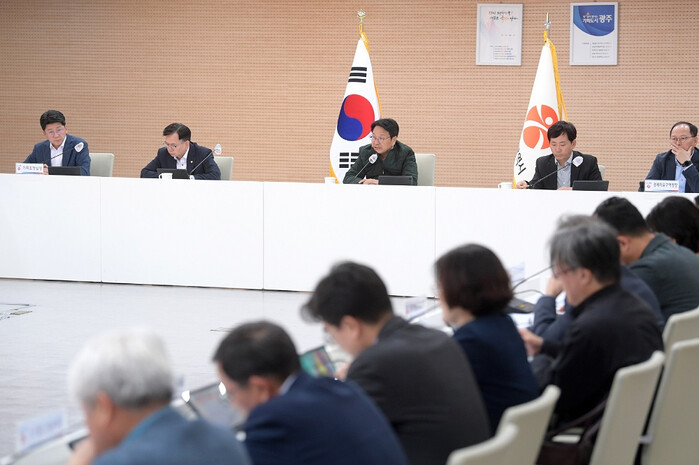 [광주=정찬남 기자] 강기정 광주광역시장이 24일 오후 시청 중회의실에서 열린 확대간부회의를 주재하고 있다. /광주광역시 제공