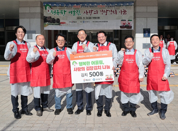 명현관 해남군수는 “명품 해남배추로 담근 김장김치가 올 겨울 안양시민들의 건강을 키우고, 따뜻한 정을 나누는 힘이 되길 바란다”며“앞으로도 해남군은 안양시와의 우정을 이어가며 상생 발전을 도모하겠다”고 말했다.