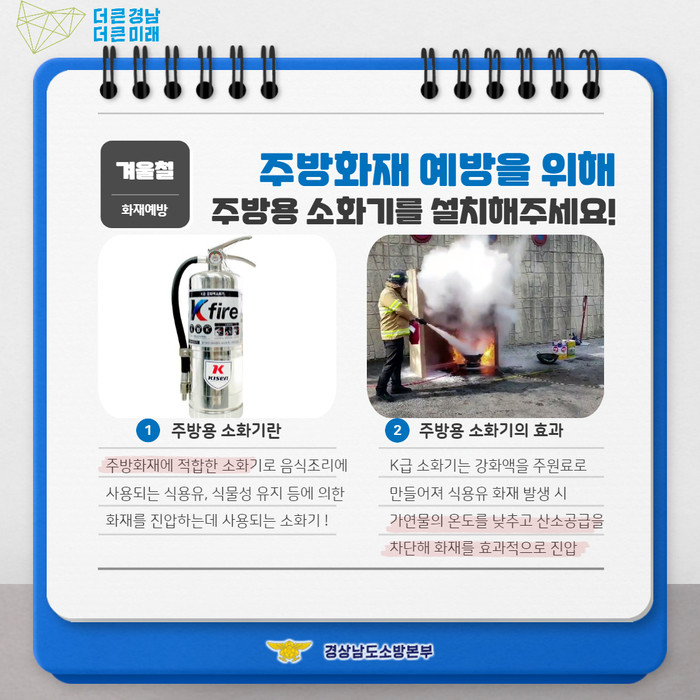 [양산=최성일 기자] 경남 양산소방서는 화재 위험이 증가하는 겨울철을 맞아 각각의 장소에 알맞은 소화기 비치를 당부한다고 14일 밝혔다.