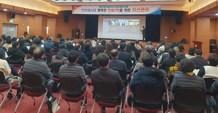 강연에 참석한 한 시민은 “인생 후반기 노후에 대한 걱정과 불안으로 가득 찼던 마음이 비워지는 시간이었다”며 “꼭 많은 자산이 있어야만 풍요로운 것이 아니라 갖고 있는 자산으로 재무설계를 다시 해보고 일과 취미활동을 하며 평생 현역으로 살아갈 자신감을 얻었다”고 말했다.